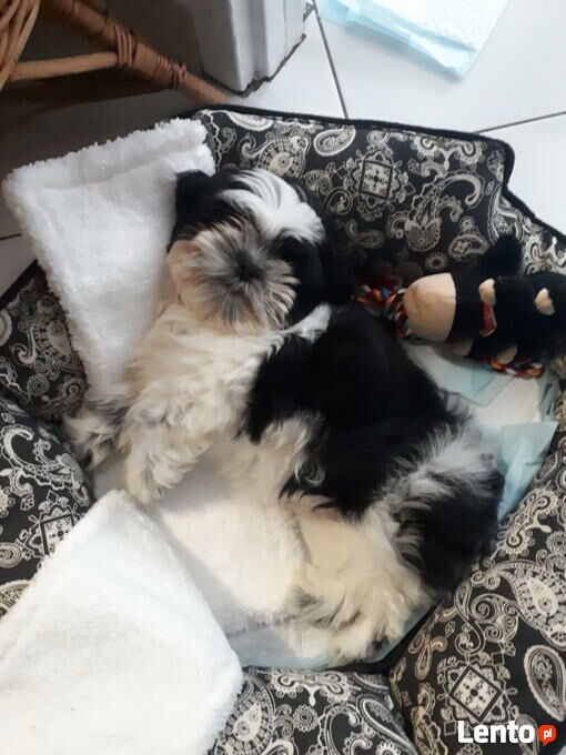 Uroczy szczeniaczek 3 miesieczny shih tzu samiec, posiada wszytkie szczepienia w tym wieku, odrobaczony, posiadak ksiażeczke zdrowia. Wychowany z dziecmi, uczony czystości, chodzić na smyczy. Piesek jest oswojony, przyjazny dla ludzi i zwierząt, wychowywany jest w domu. Jest wesolym pieskiem,chetnyn do zabawy z dziećmi. Cena 1500zł. Nr. tel 789 - pokaż numer telefonu - , Nr tel. 514 - pokaż numer telefonu -Powiadom o podobnych ogłoszeniach