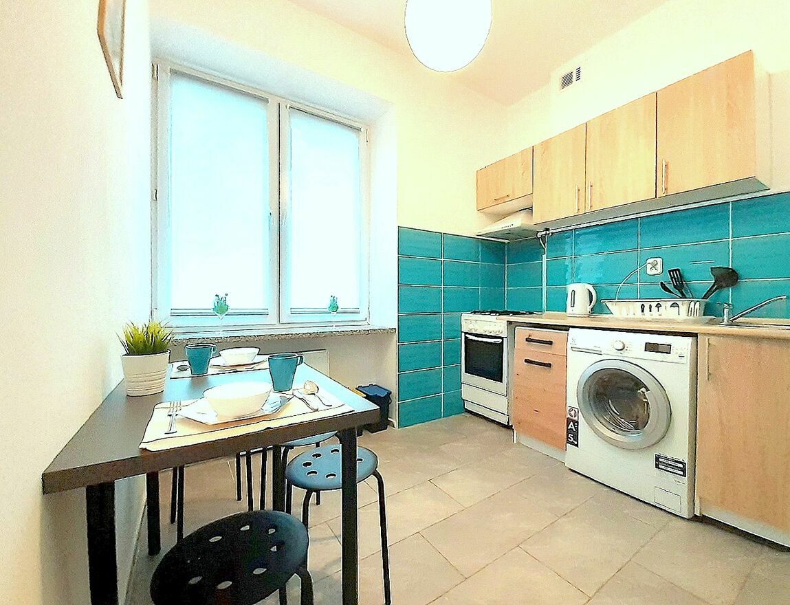 Kuchnia jest oddziela, widna, z oknem. W kuchni jest pełne wyposażenie (lodówka, kuchenka gazowa, czajnik elektryczny, garnki, talerze, szklanki, sztućce, etc.)