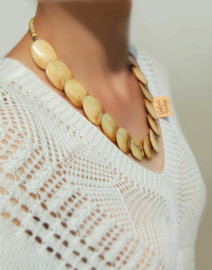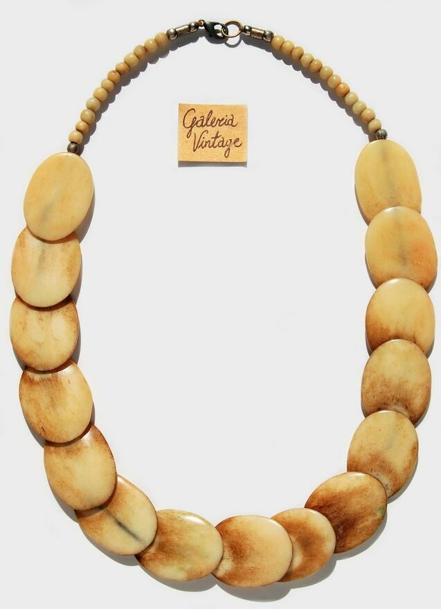 Stary naszyjnik z kości, kość bawołu, vintage