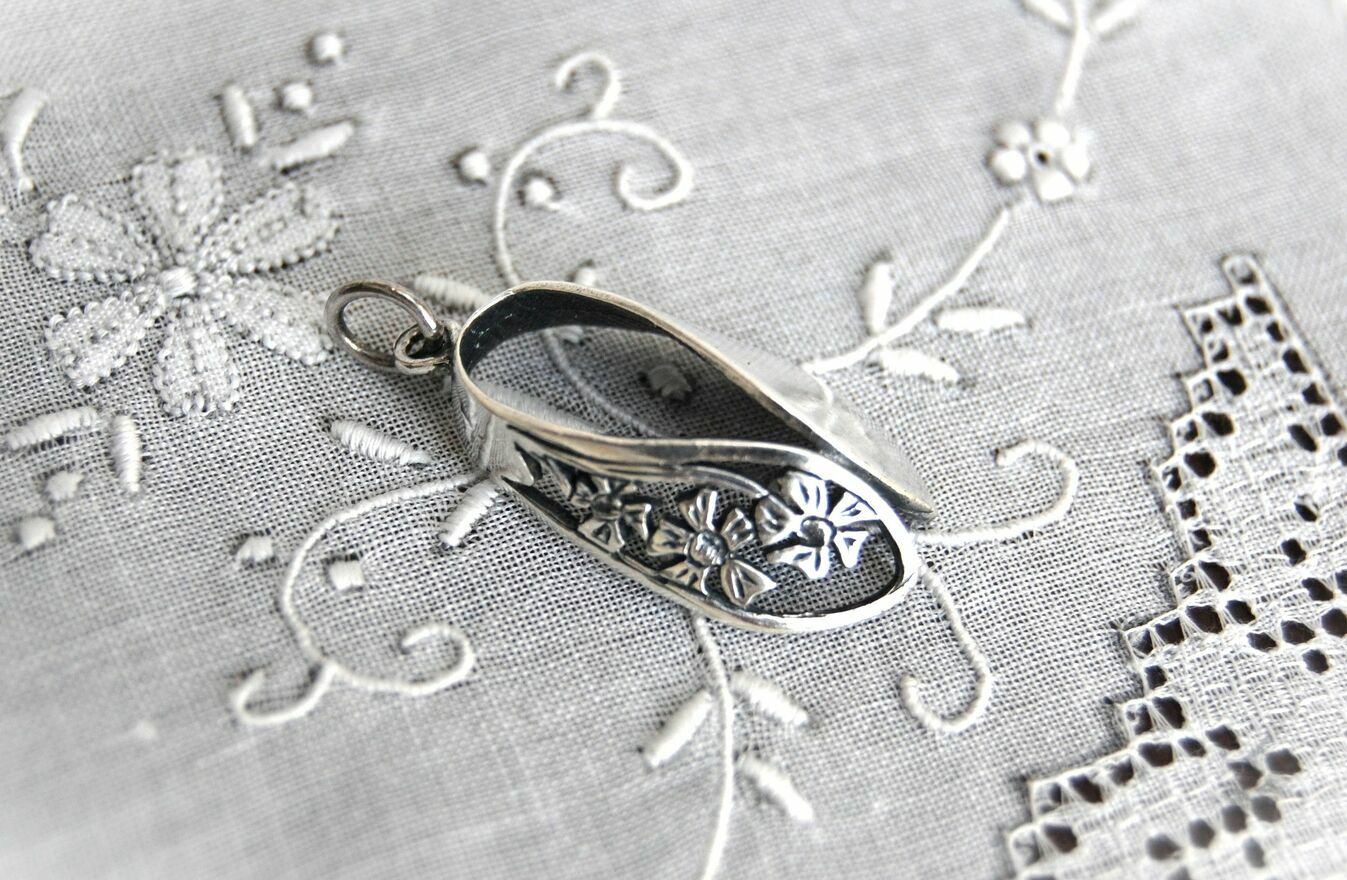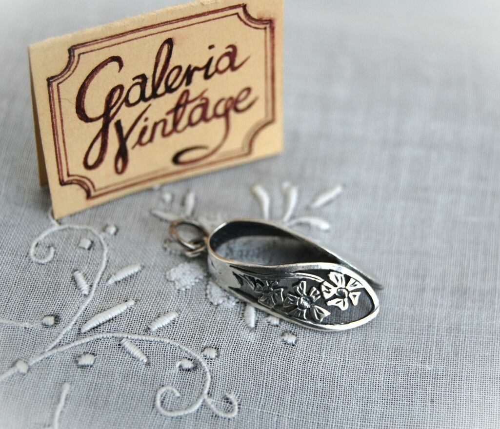 Stary wisiorek srebrny łezka kwiaty secesja srebro PRL
