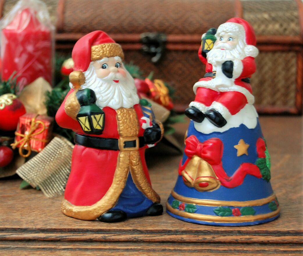 Święty Mikołaj, ręcznie malowana figurka, dzwonek, porcelana