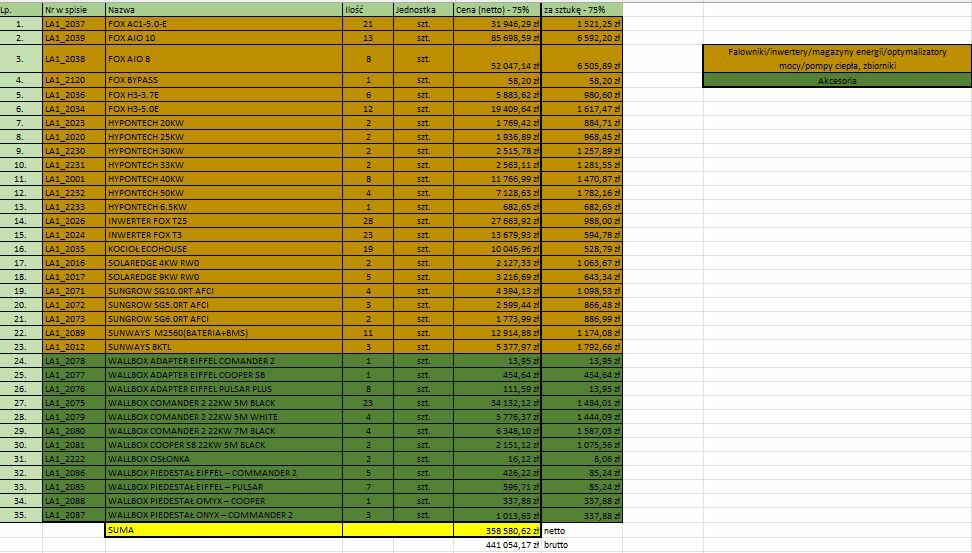 Syndyk sprzeda-hurtownia fotowoltaiczna 75% ceny oszac.