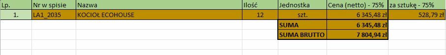 Syndyk masy upadłości SUNPROFI SP. Z O.O. (sygn. akt LU1S/GUp/16/2024) ogłasza konkurs ofert na zakup KOCIOŁ ECOHOUSEISTNIEJE MOŻLIWOŚĆ NABYCIA DOWOLNEJ ILOŚCI TOWARU.