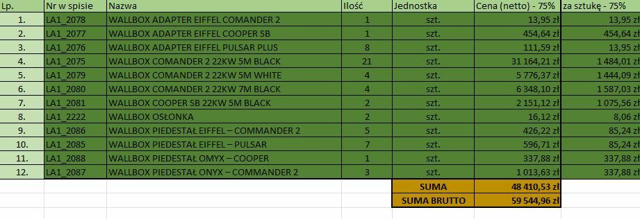 Syndyk masy upadłości SUNPROFI SP. Z O.O. (sygn. akt LU1S/GUp/16/2024) ogłasza konkurs ofert na zakup WALLBOX RÓŻNE MODELE.ISTNIEJE MOŻLIWOŚĆ NABYCIA DOWOLNEJ ILOŚCI TOWARU.