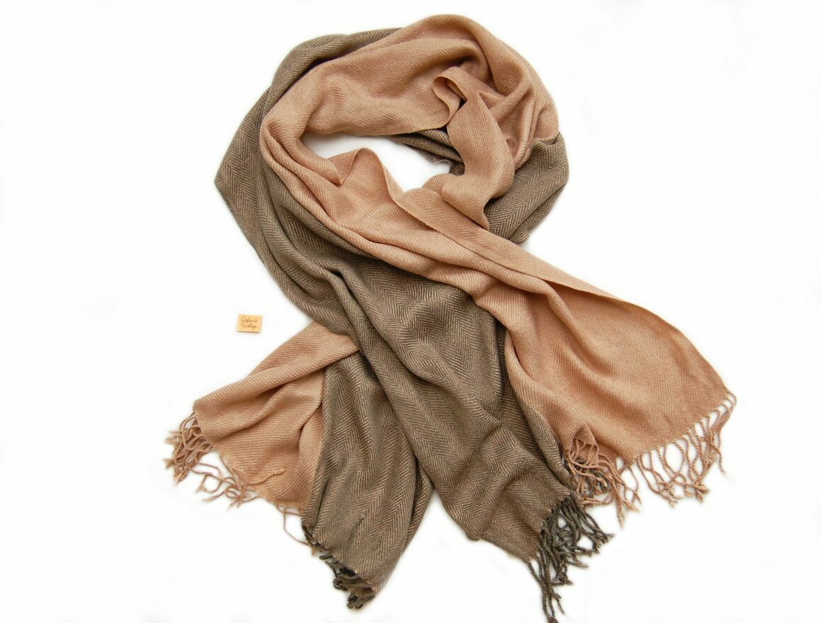 Szal damski, beż, camel, brąz, wiskoza, wełna