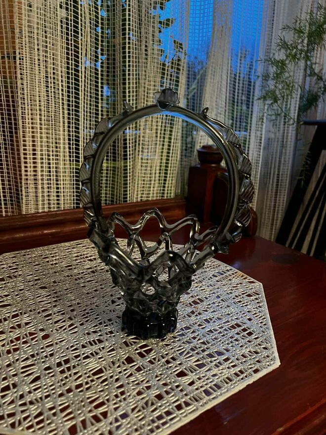Szklany koszyk. Nie posiada żadnych uszkodzeń. Stał jako dekoracja.Sprawdź zainteresowanie tym ogłoszeniem