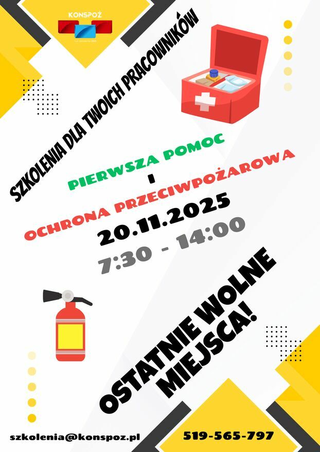 OSTATNIE MIEJSCA!Nie przegap listopadowego cyklu szkoleń Pierwsza Pomoc + Ochrona PPOŻ w KONSPOŻ!