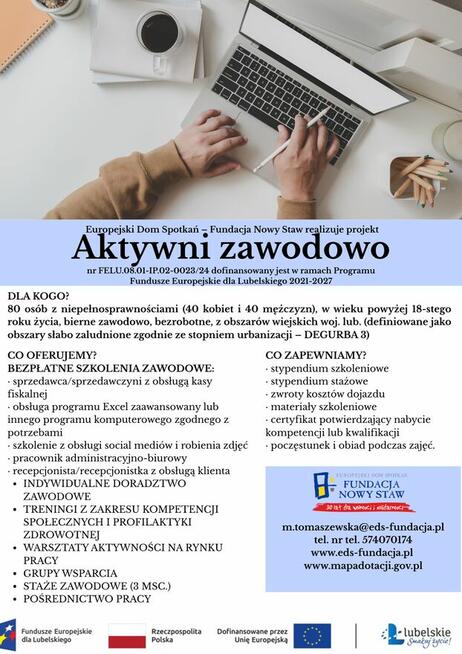 Projekt „Aktywni zawodowo” jest realizowany w ramach programu FUNDUSZE EUROPEJSKIE DLA LUBELSKIEGO ...