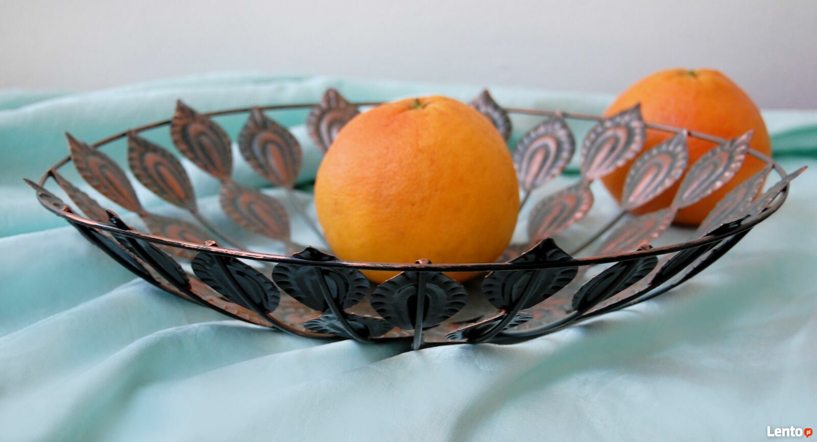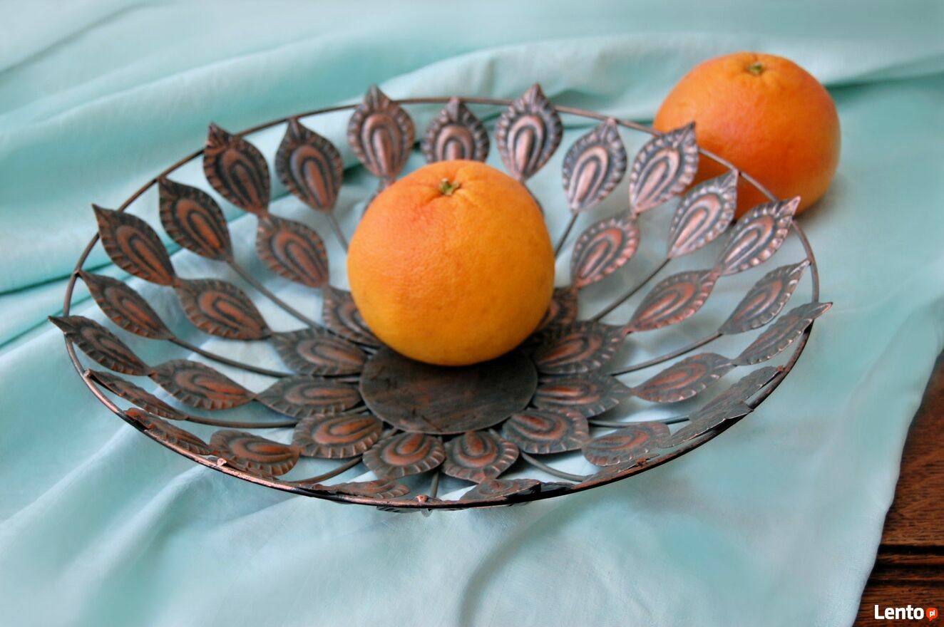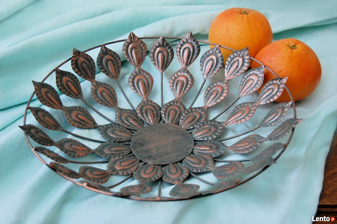 Szwedzka, ażurowa, metalowa patera indyjska w pawie pióra