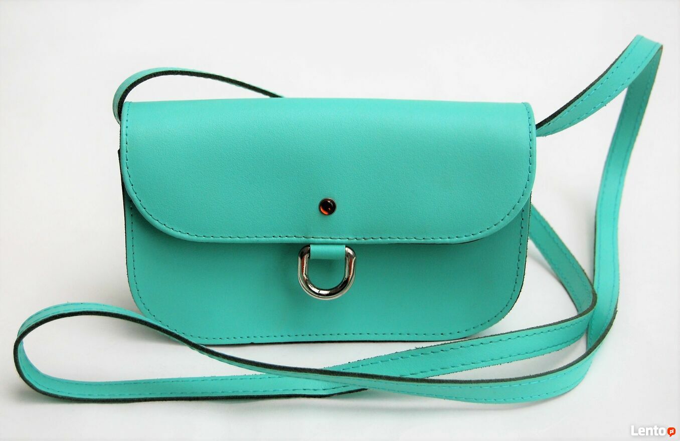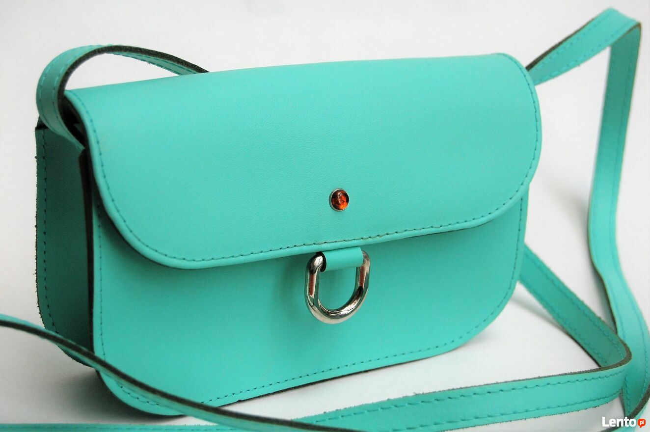 Torebka damska, kopertowa na ramię, Lucky marki Batycki. Śliczna, mała kopertówka na różne okazje. Materiał: skóra naturalna licowa. Kolor miętowy, pastelowy turkus (nazwa koloru producenta: lazur). Front jest ozdobiony koniakowym bursztynkiem i stalowym uchwytem. Zapięcie na magnetyczny zatrzask. Jedna komora. Stan zachowania bardzo dobry, torebka była kilka razy założona, nie ma śladów użytkowania, jest jak nowa.CENA NIE PODLEGA NEGOCJACJI.