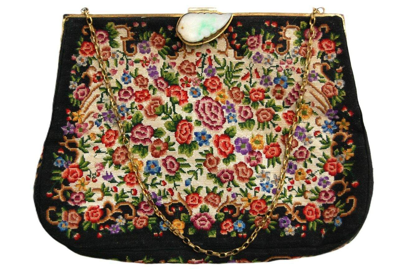 Torebka gobelinowa do ręki, gobelin, jadeit, Paryż, Francja