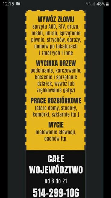 Zapraszamy do skorzystania z naszych usług: *Wywóz złomu, sprzętu AGD, RTV, gruzu, mebli, ubrań, sprzątanie piwnic, ...