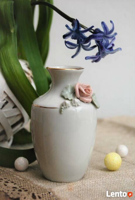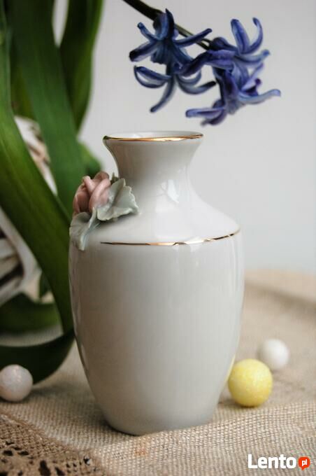 Wazonik róża konwalie relief porcelana Ćmielów