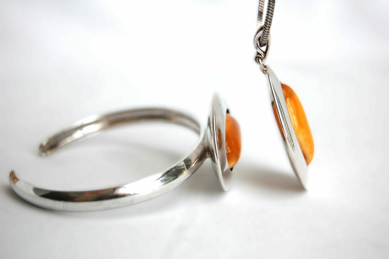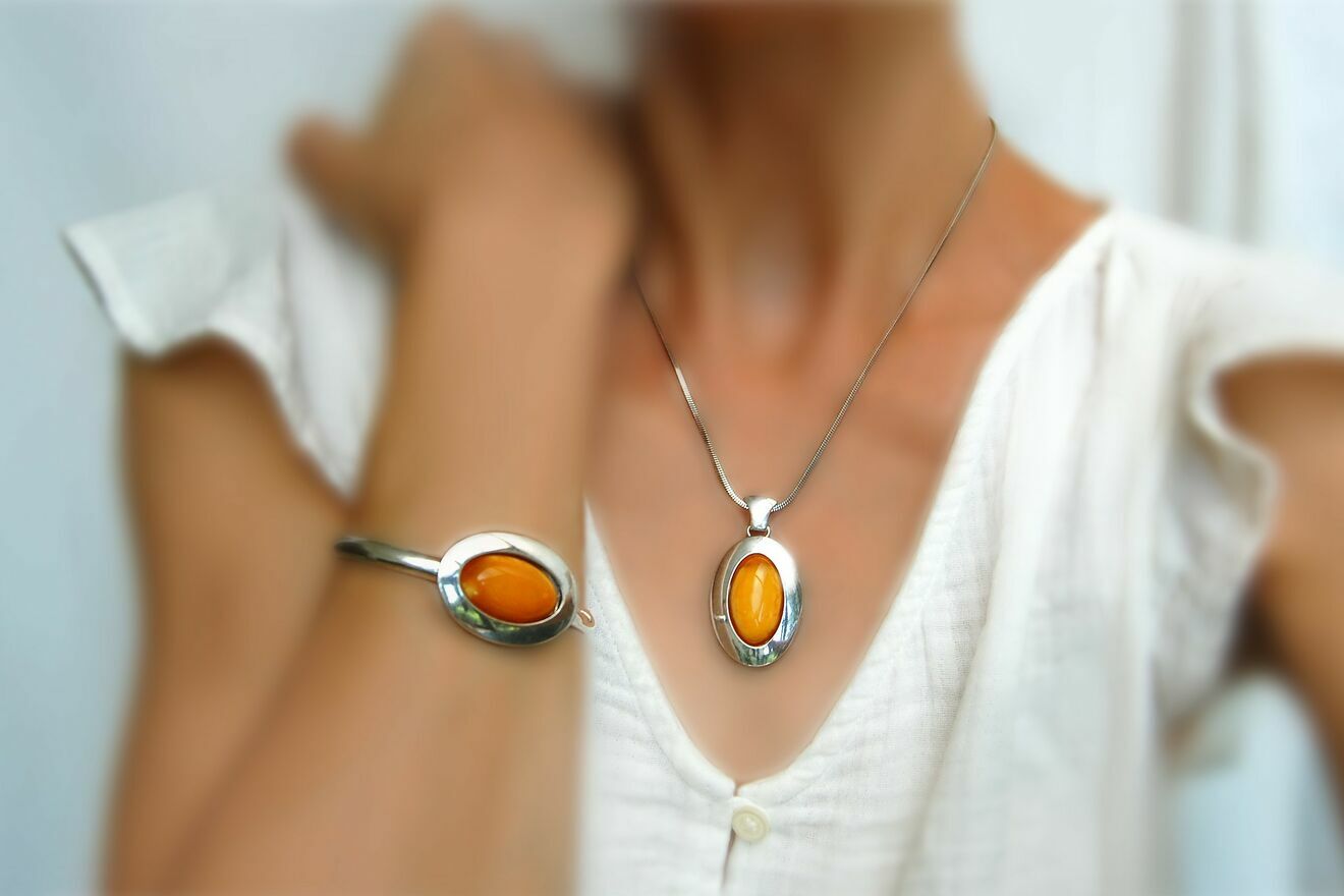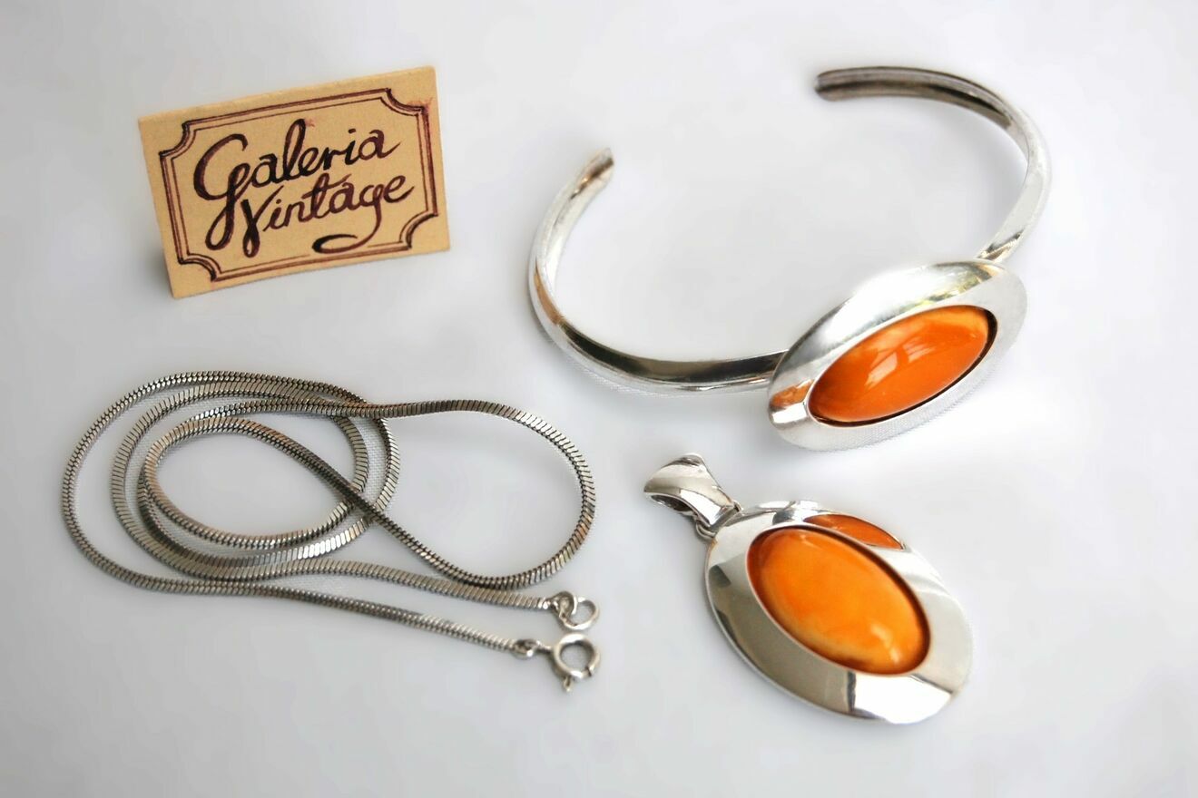 Wisior, bransoletka, bursztyn bałtycki mleczny, srebro 925