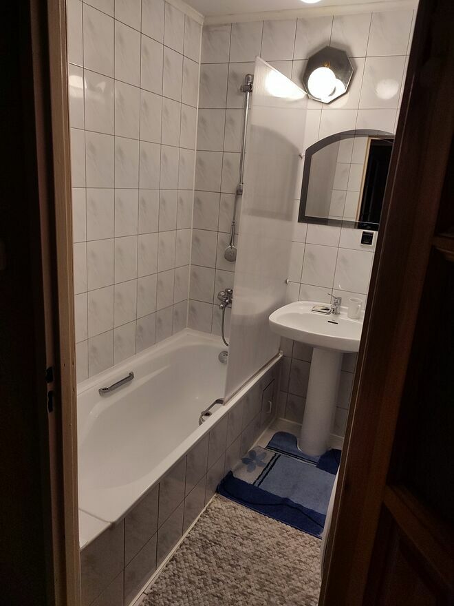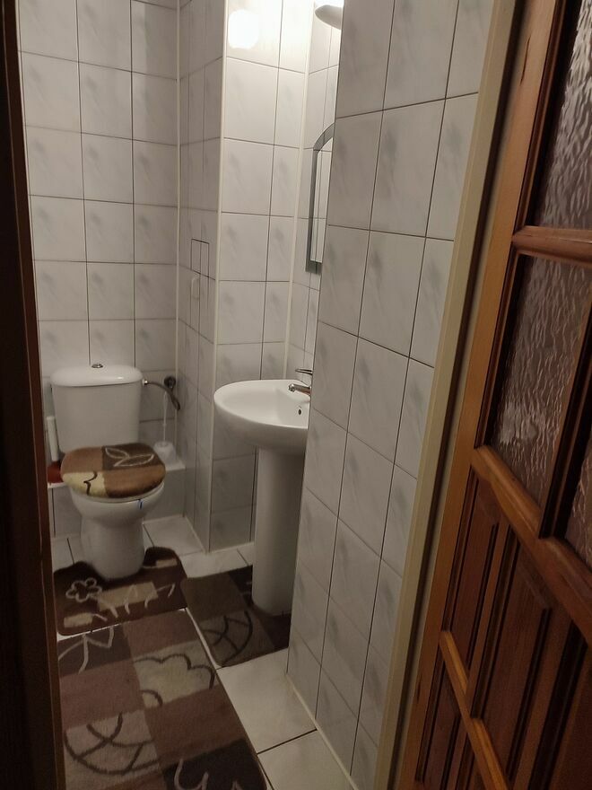W łazience jest wanna, pralka. WC jest oddzielnie.