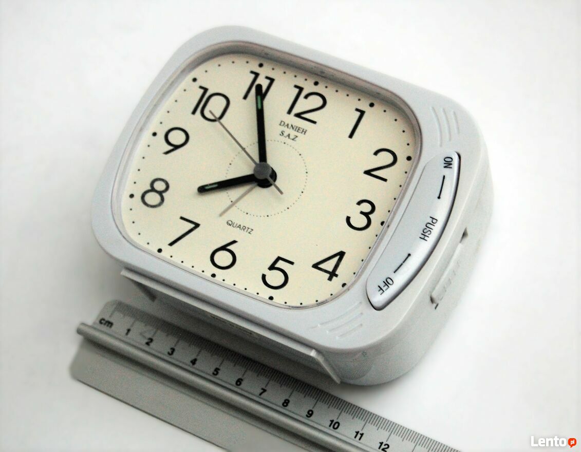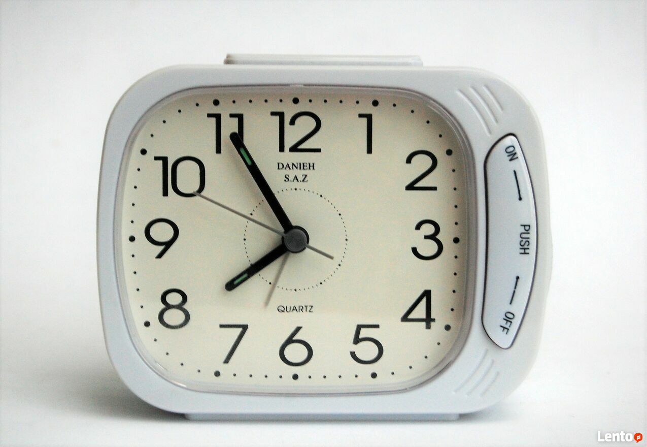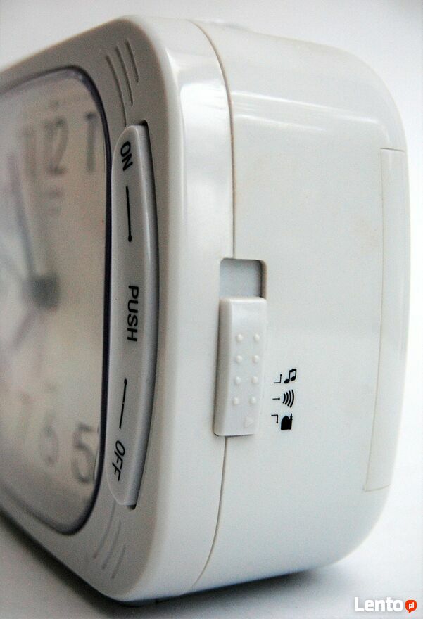 Zwykły, biały, niczym nie budzący podejrzeń budzik? Nic bardziej mylnego! Kiedy wybije godzina i rozlegnie się głośny zaśpiew muezzina wzywającego wiernych na modlitwę, natychmiast zerwiesz się na nogi Ty, Twoi sąsiedzi, wszyscy żywi, a nawet umarli. Nie ma mowy o zaspaniu. ;)Budzik irańskiej marki Danieh S.A.Z. Kolor biały. Plastikowa obudowa. Alarm ma trzy tony do wyboru, oznaczone ikonkami. Dwa są konwencjonalne, trzeci - oznaczony symbolem świątyni gwarantuje mocny wyrzut adrenaliny i punktualność - nie zmieni tego ustawienie funkcji drzemki. ;) Dźwięk jest bardzo głośny. Budzik jest duży, z czytelnym cyferblatem i fosforyzującymi wskazówkami. Zasilanie na dwie baterie AA. Stan zachowania bardzo dobry, wymaga nowych baterii.
